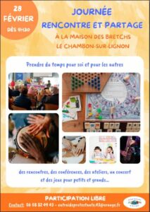 « Prendre du temps pour soi et pour les autres », le 28 Février, à la Maison des Bretchs et à la salle Bastianou au Chambon sur Lignon